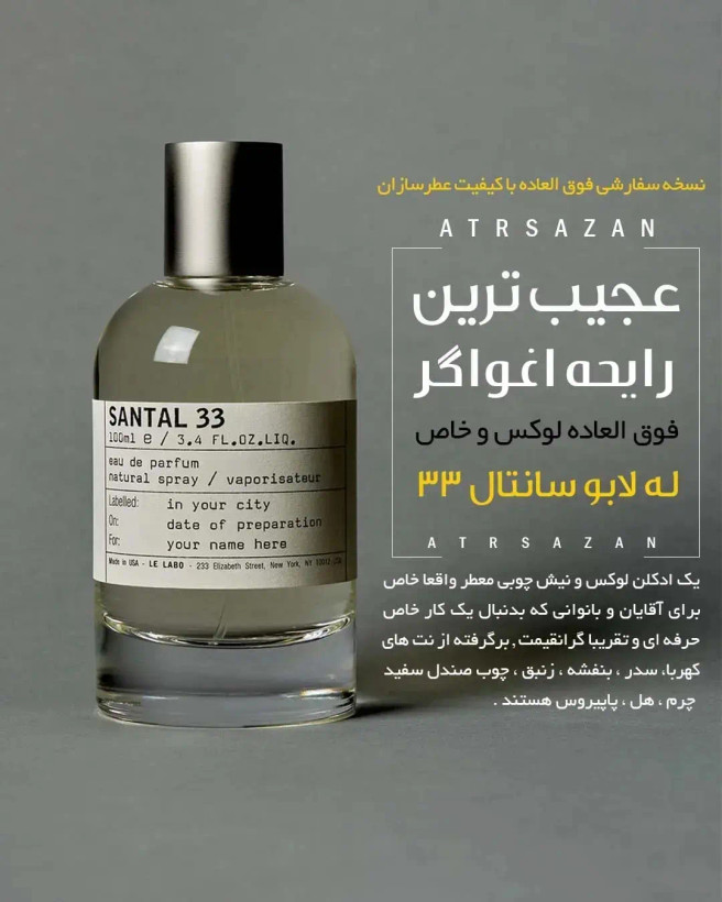 ورود رایحه کمی خنک و کمی تند و کمی تلخ چرم، دوام و ماندگاری این عطر را تضمین میکند و هنگامی که طیفی از رایحههای قدرتمند چوبی نظیر چوب صندل استرالیایی و چوب سدار به ترکیب عطر راه مییابند سبب میشود تا رایحه اصلی عطر سانتال 33 وامدار حضور اینگونه رایحههای قدرتمند باشد.